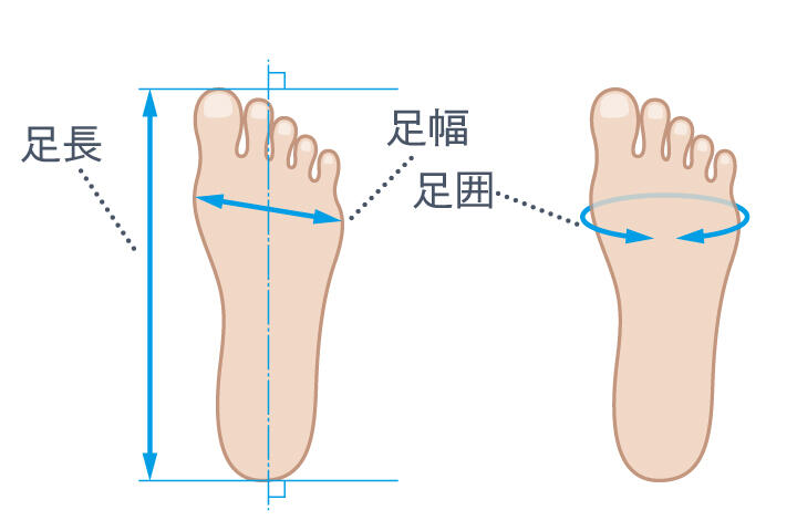 お店では足の長さだけではなく、長さ以外の数値も計測します。ここでは靴選びに大切な足の計測ポイントを紹介します。