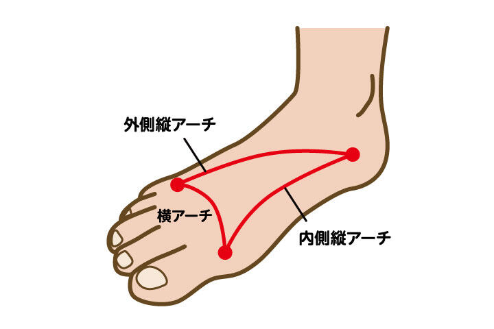 【外側縦アーチ】 かかとから小指の付け根までをつなぐアーチ。体の安定性を高めるのに貢献しています。