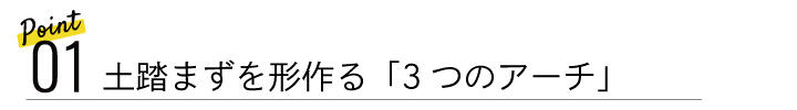 「土踏まず」は以下の3つのアーチが立体的に組み合わさることで、私たちの体を支えています。