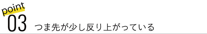 つま先が完全にフラットな靴は、歩くときにつま先がひっかかり転びやすくなります。ファーストシューズを選ぶ際は、つま先が少しだけ上を向いている(反り上がっている)デザインを選びましょう。3歳半までは、半年で約10mm大きくなるので、こまめな計測が理想的です。