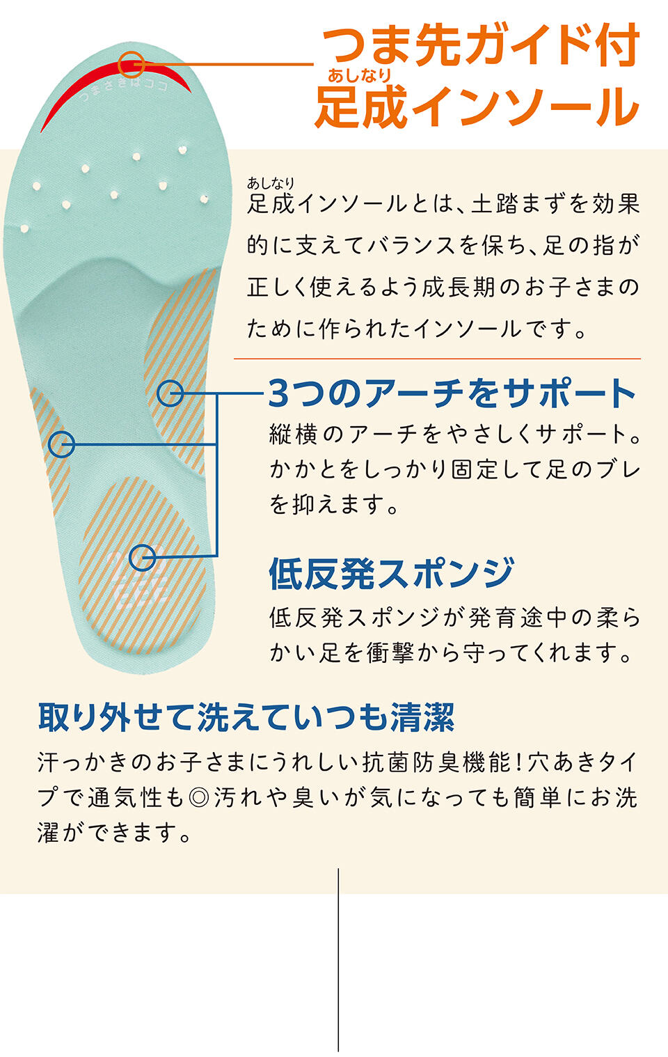 成長の速度は人それぞれ違います。どんどん成長するお子さまの足のために、半年ごとにサイズを見直し、購入前には必ず履いてみましょう♪