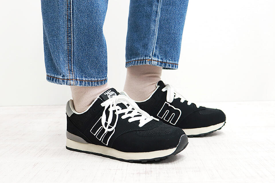 スニーカー。外側に“m”のプリント!