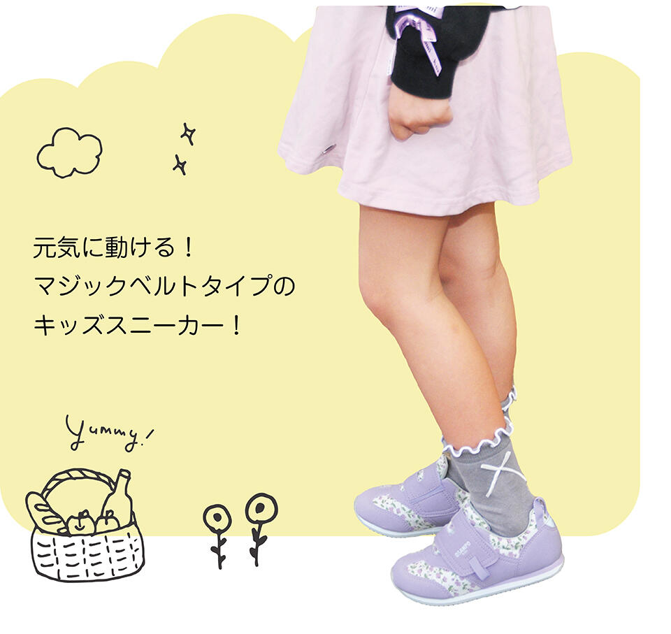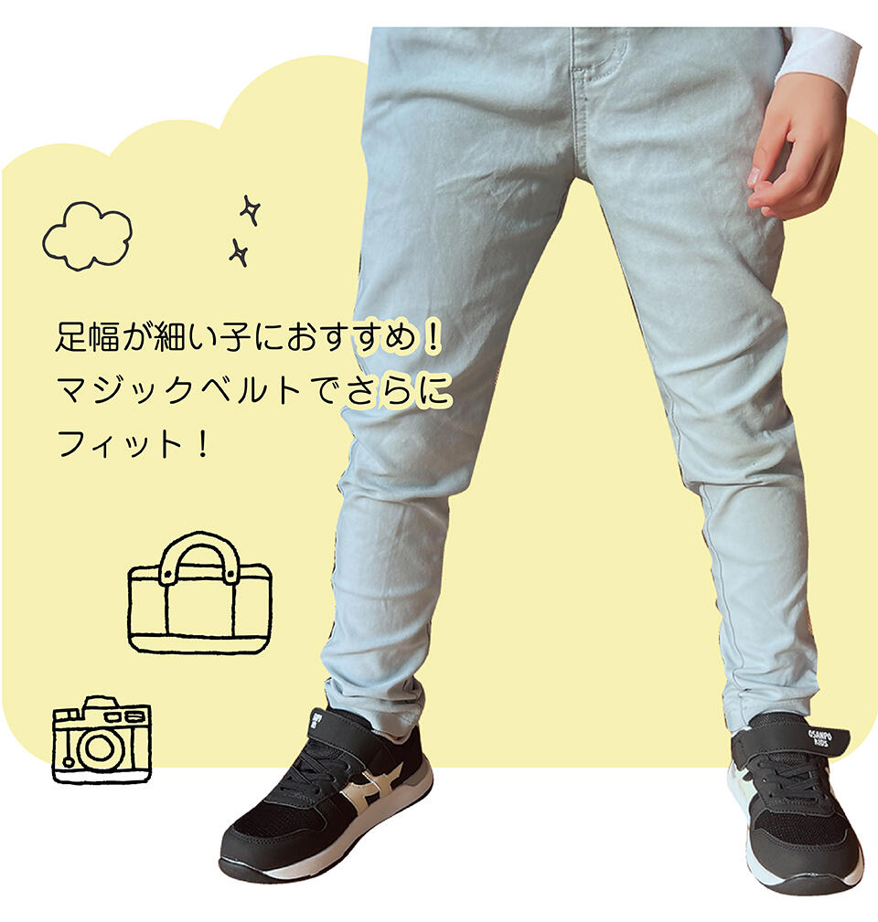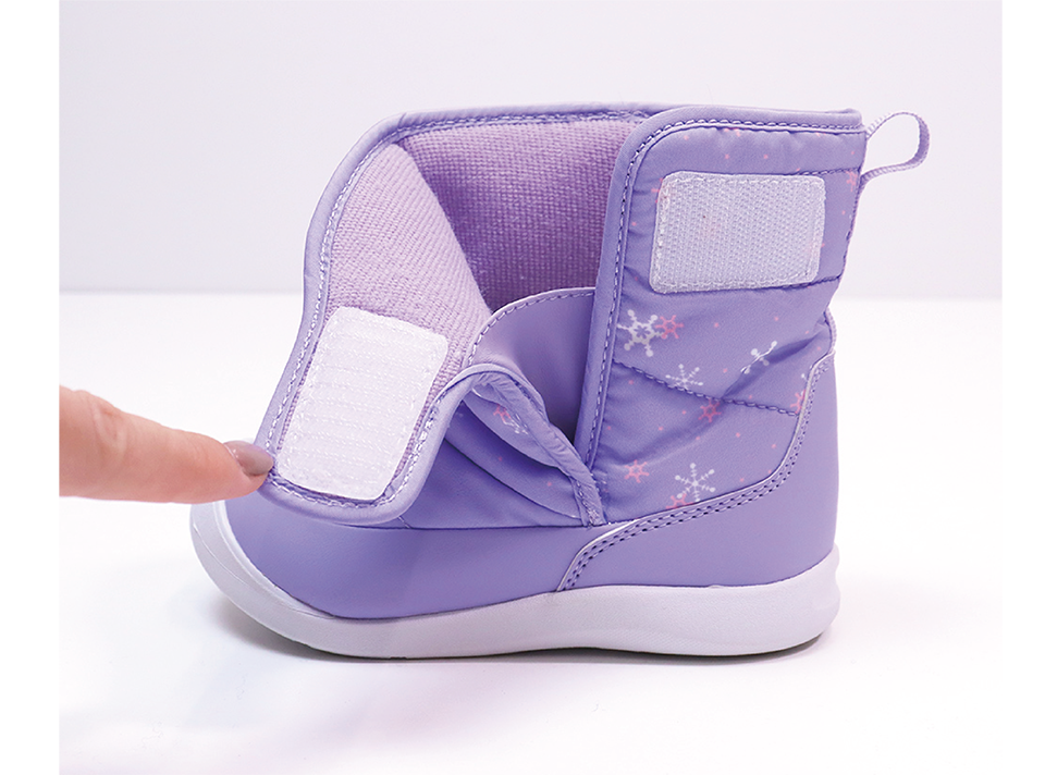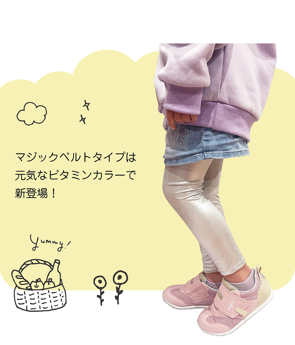 まだヒモを結べないお子さんには「太い」「ガバっと開く」大きめマジックタイプがおすすめ。引っぱりながら閉めることでぴったりフィット!