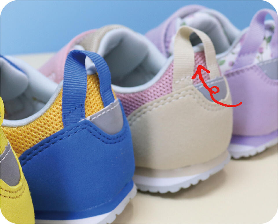 お子さんがつかみやすいタグがあるとひとりで履く練習になりますね♪
