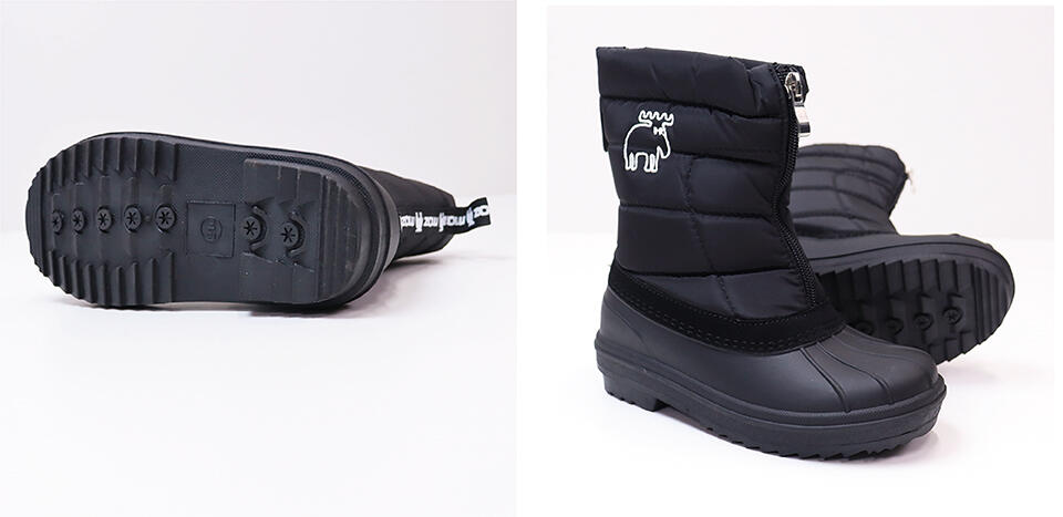 内側ファスナーで脱ぎ履き簡単。深い溝のソールに、折り返して使えるスパイク付きで雪道もガツガツ歩ける安心の防水防滑ブーツです。