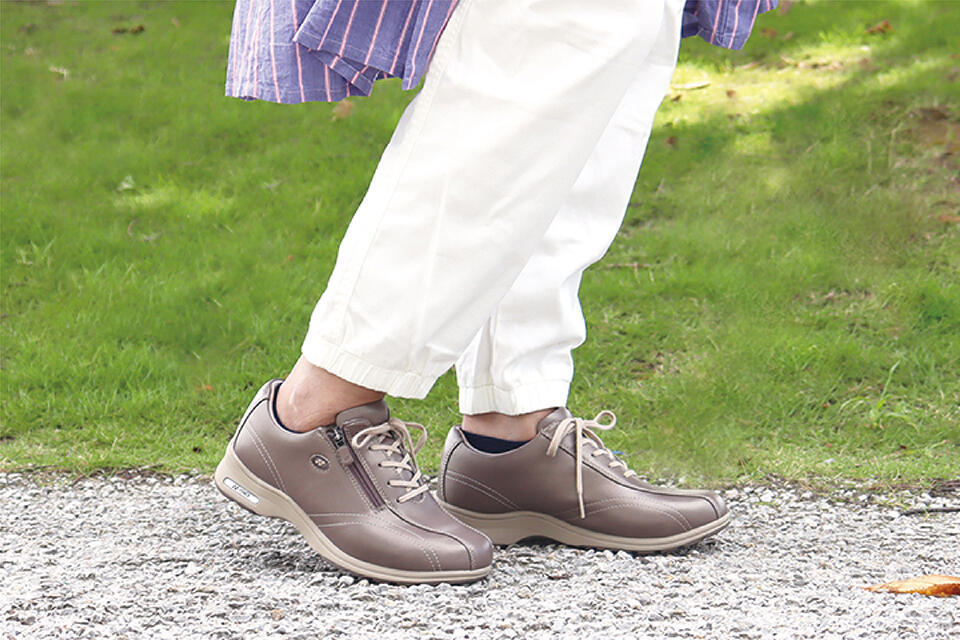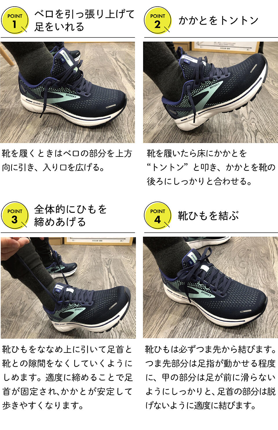 靴ひもで足とかかとをしっかり固定すると、身体の土台である足が安定し、歩行や姿勢がよくなります。