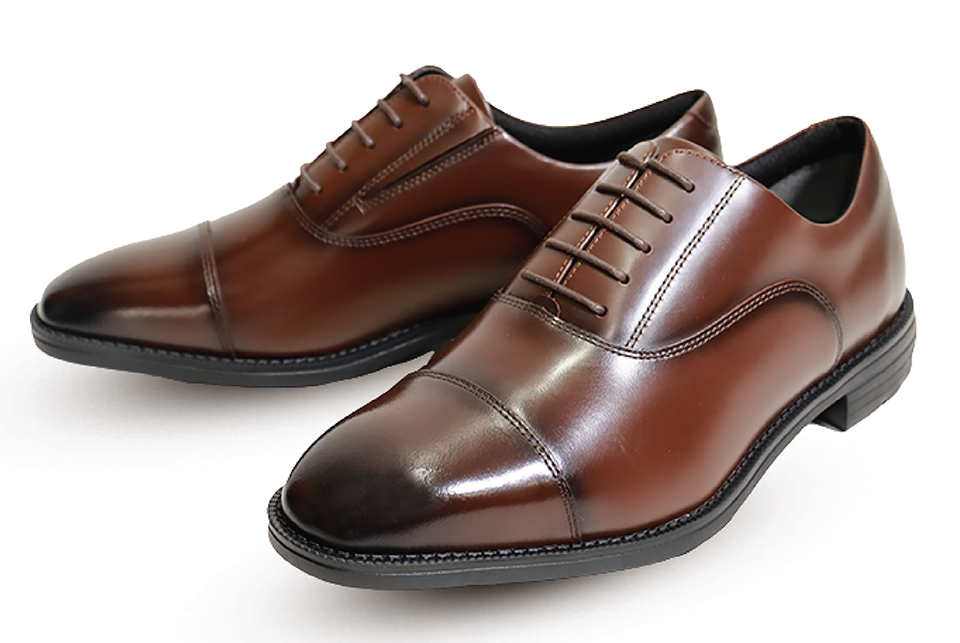 スクエアトゥのストレートチップタイプ。上質感のあるソフト牛革を使用。足裏にフィットする中敷と、曲がりやすい設計でスムーズな歩行をサポート。