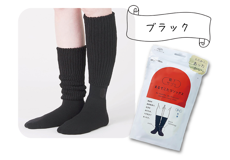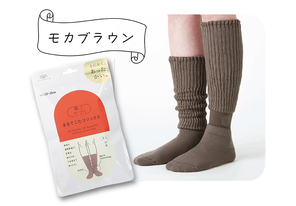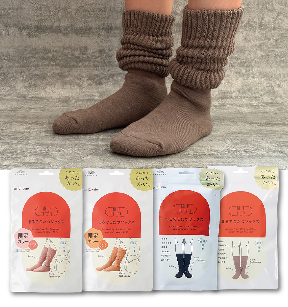 メーカー独自開発の特殊保温・発熱素材を使用し、足首のツボを刺激して足元からからだを温めてくれます。その名の通り、まるでこたつに入っているような心地よい温かさとふわふわな生地がクセになるソックスです。