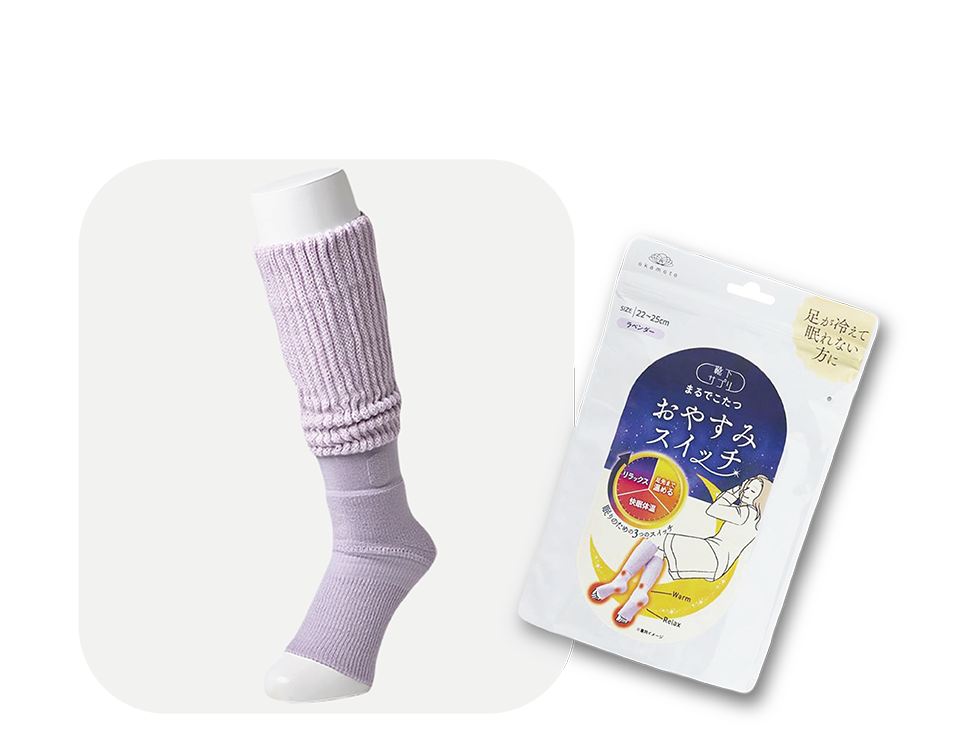 足裏かかとのツボを刺激して血行促進。オープン設計で快適体温へ。つま先まであったかリラックス効果で質の良い眠りをあたえてくれます。
