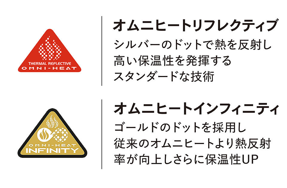 コロンビア独自の熱反射保温機能で体温を反射して効率よく保温します。