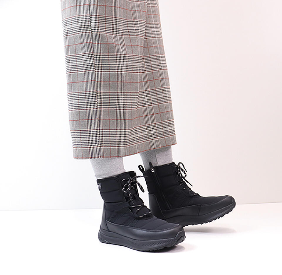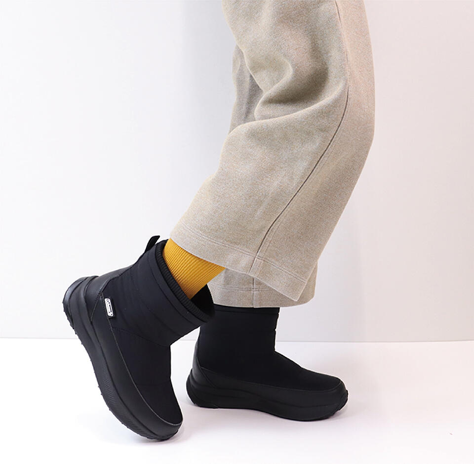スタイルを選ばず、雪のない日も歩きやすいシンプルデザインのショート丈ブーツです。