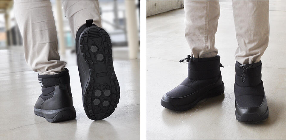 そのままスポッと脱ぎ履き。履き口のドローコードを絞れば、雪の侵入などをブロック。アクティブでスタイリッシュなウィンターブーツです。