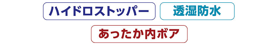 防水性と透湿性を備えたメンブレンを使用。防水フィルムを使い浸水を防ぎます。雨や雪を通さず、蒸れを外に逃してくれるので長時間快適に履くことができます。