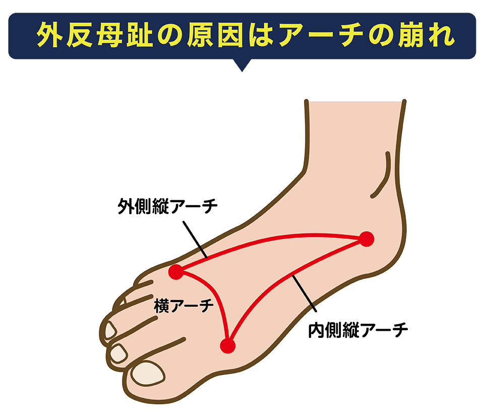足の指をしっかり使って歩く機会が少ないと、足のアーチを支える筋肉が衰えます。これにより、足のアーチが崩れやすくなり、外反母趾につながることがあります。