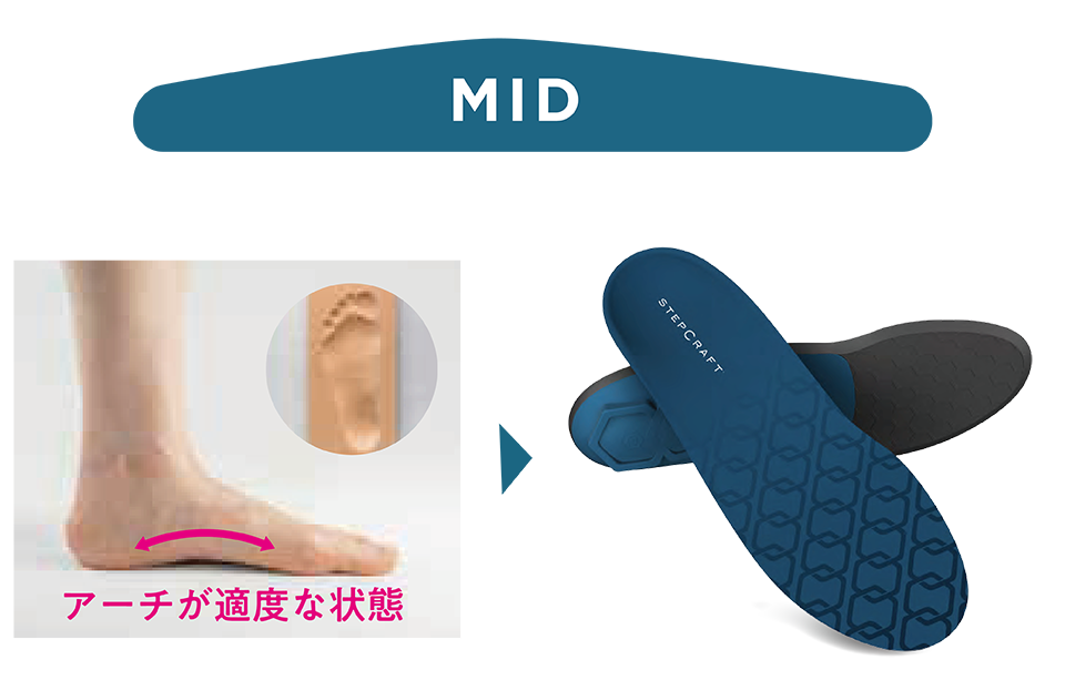 最も汎用性が高い薄型・細身のモデル。様々な足のタイプの方、幅広い種類の靴に合わせたい方におすすめ。