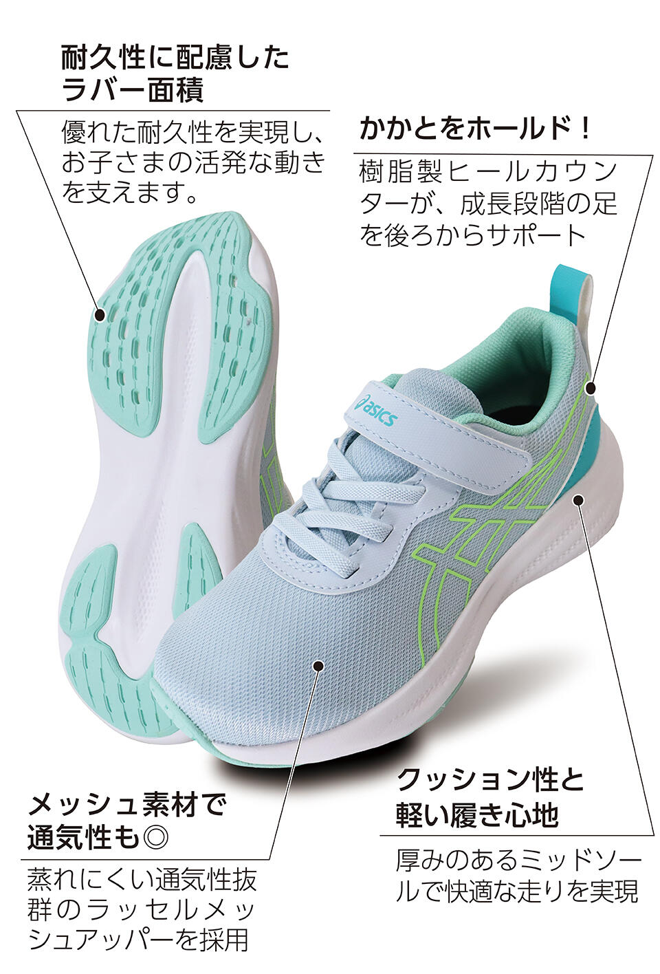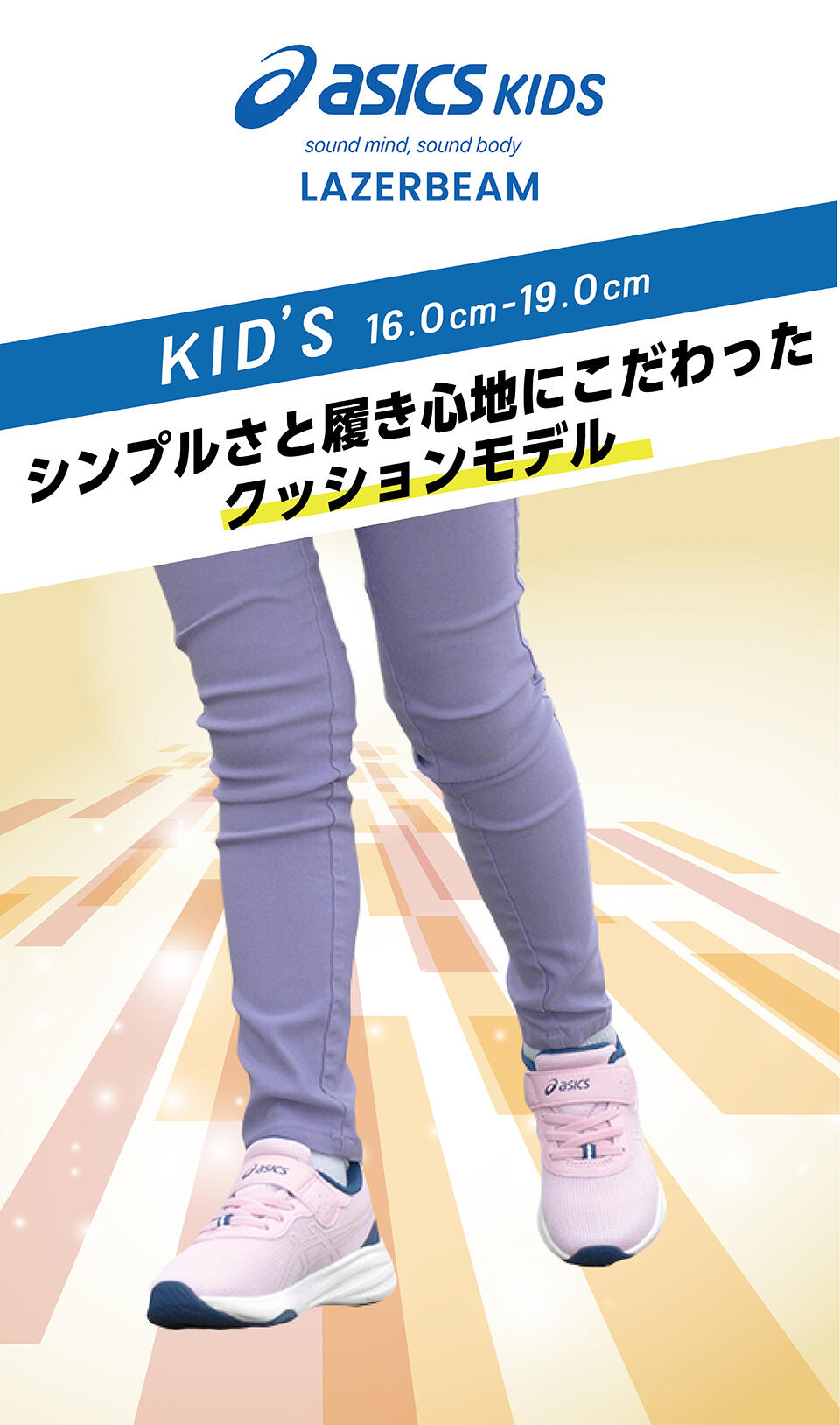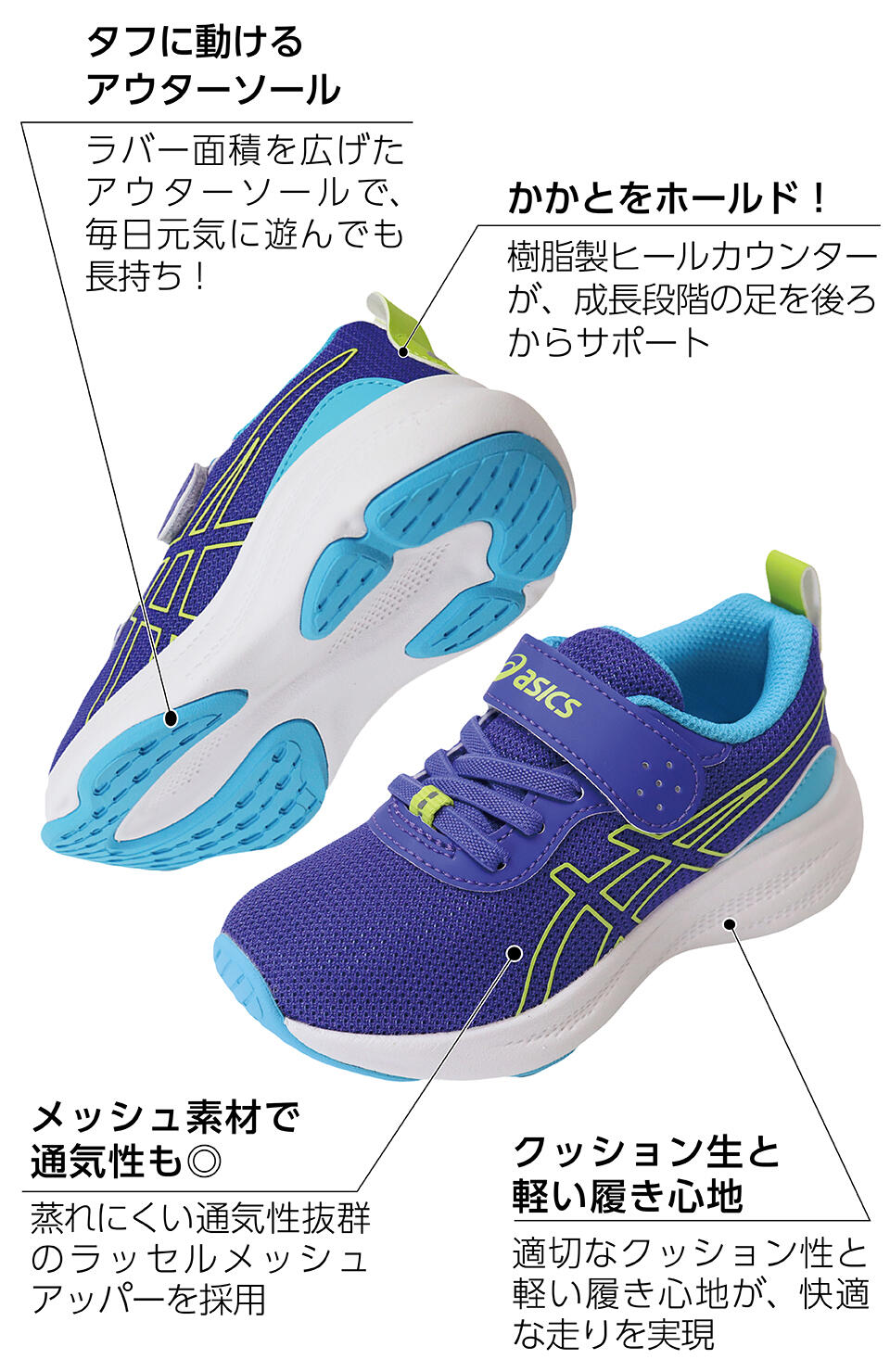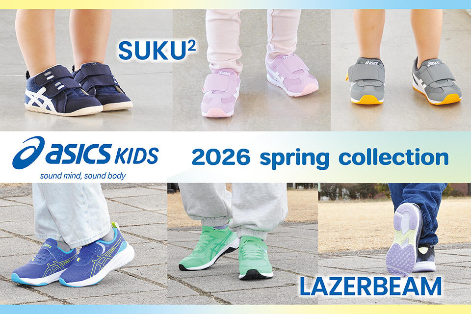 そんな、足の成長に合わせた最適な機能のサポートを実現するため、アシックスが誇る2大キッズブランド『スクスク』&『レーザービーム』を厳選してラインナップしました。